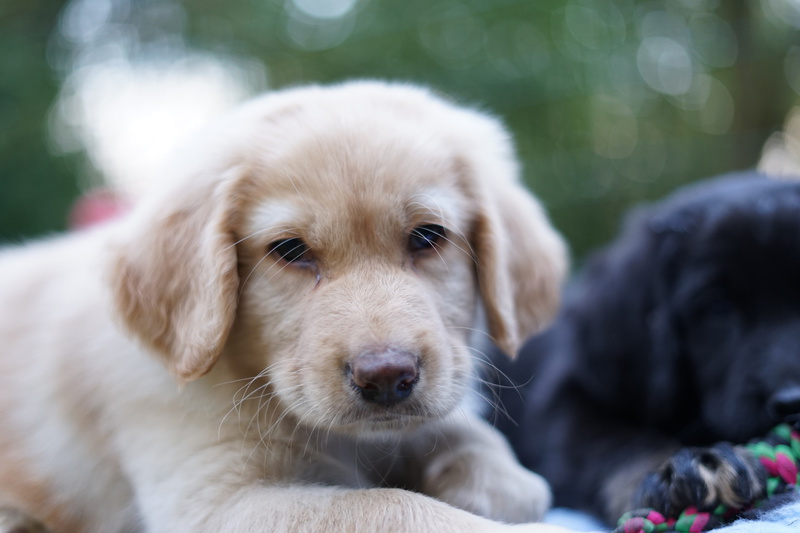 Conrad, der einzige blonde Rüde aus dem C-Wurf, lebt nun bei einer erfahrenen Hovawart-Besitzerin in Dortmund. Jeden Freitag trifft er seine Schwester Chiva auf dem Hundeplatz in