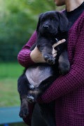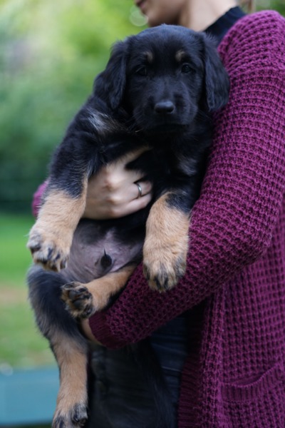 Mit sieben Wochen geraten die Welpen langsam außer Rand und Band. Das Toben mit den Geschwistern wird immer turbulenter. Langsam haben sich die Sieben so weit entwickelt, dass sie bald in ihre neuen Familien gehen können. Die einzelnen Charaktere sind nun so gut erkennbar, dass wir die Namen endlich fest verteilen konnten.